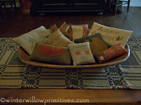 Morning, wonderful Fall displayed throughout out your cozy prim home.....love the trencher full of goodies, Fall Blessings Francine.