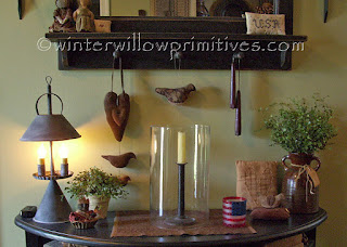 on the foyer table I have a few handmades along with the Charleston lamp, this one's mine but there is current stock available in my shoppe!